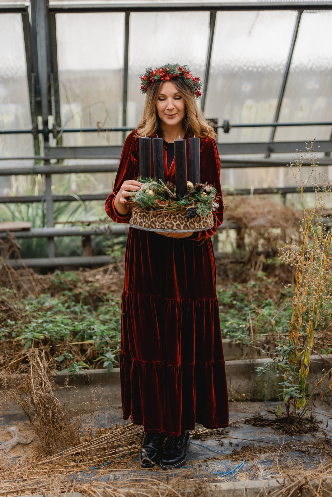 Natürliche Mischgrün aus dem heimischen Wald, selbst gesammelt und geschnitten. Die Materialien können auch getrocknet werden, so kann man den Kranz später noch verwenden. Exklusive Kerzen.